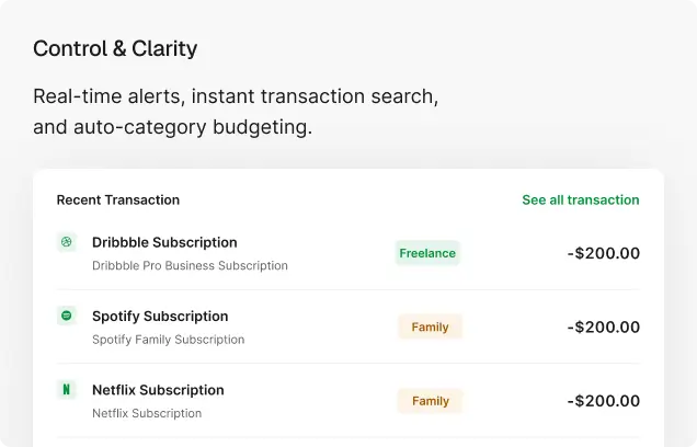 No worries — just freeze it instantly in the app to block transactions, and order a replacement with a tap.
